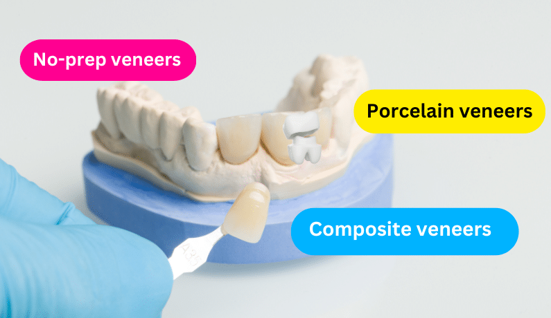 Composite veneers: This veneer is made from the same tooth-colored composite resin as dental bonding to achieve the desired results. Some composite material is always used to create temporary veneers.